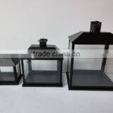 Black Metal And Glass Lantern for Parafin Wax Pillar Candle