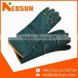 Green Cowhide Split Full Palm Leather Welding Gloves