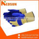 - Blue&white Polyester Thread 13 Gauge Knitted Deep Blue Foamed Wrinkled Latex Palm Coated Safety Work Gloves