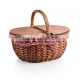 Natural Willow Basket With Wooden Lid One Removable Cotton/poly Basket Liner