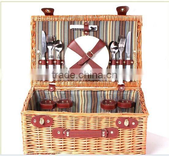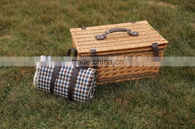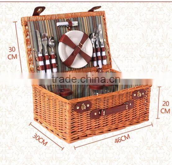 handmade foldable picnic basket wicker picnic basket with lid for 4person.