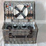 2016 Wholesale Empty Willow 4 Person Picnic Basket With Fabric
