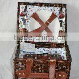 2016 Wholesale Empty Willow 4 Person Picnic Basket With Fabric