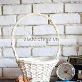 Handmade White Wicker Flower Basket Wedding Flower Basket With Plastic Liner