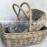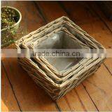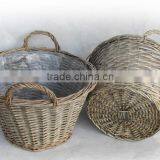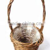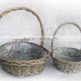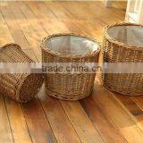 100%Handmade Plastic Lined Antique Willow Flower Plant Basket Cheap Flower Pots