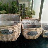 100%Handmade Plastic Lined Antique Willow Flower Plant Basket Cheap Flower Pots