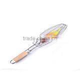 Nonstick Fish Grilling Basket Folding for Roast BBQ Barbecue With Wood Handle
