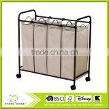 Rolling Quad Sorter Laundry Hamper With Natural Polyester Bags, Antique Bronze Frame
