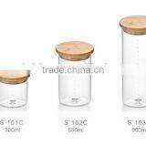 300ml Cheap Price High Borosilicate Glass Lock Lock Glass Containers/glass Container With Wood Lid