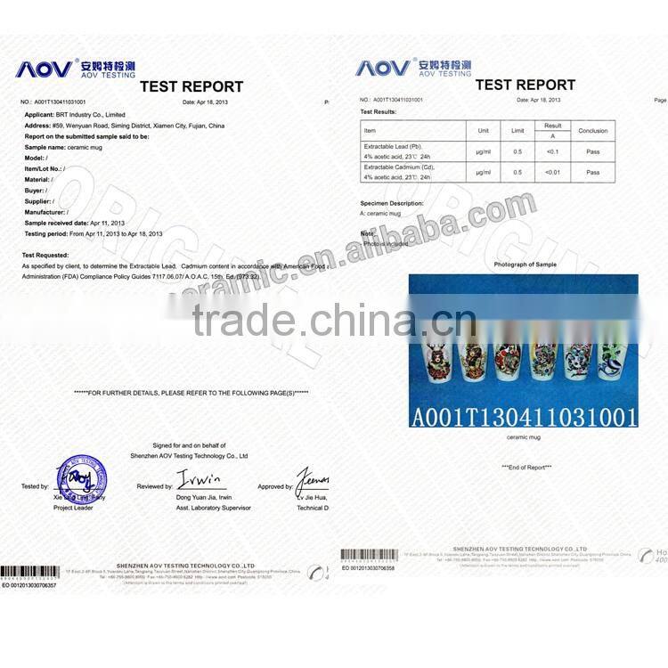 Our ceramic items are totally food safe, can pass tests as FDA, SGS, LFGB, Prop65...