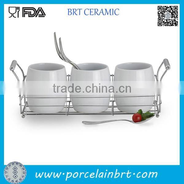 Home > Products > Tablewares and Kitchenwares > High White Porcelain Utensils Canister With Stainless Steel Holder