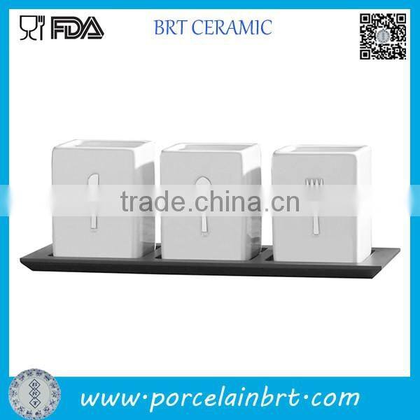 Home > Products > Tablewares and Kitchenwares > Ceramic Kitchenware Utensils Holder Set of 3 With Bamboo Base