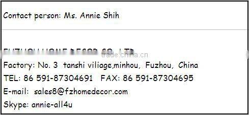 At Fuzhou Home Decor., we are proud of focusing on High Quality, value, innovation and service. We hope you will delighted with that .await you in our website and thank you for your continuing support.