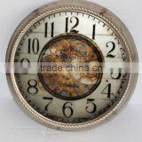 Antique Decorative Metal Mirror Printing Clock With Wheel Gear Decor