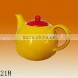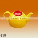 Factory Direct Wholesale 900ml Pigmented Ceramic Tea Pot, Yellow Body With Red Lid