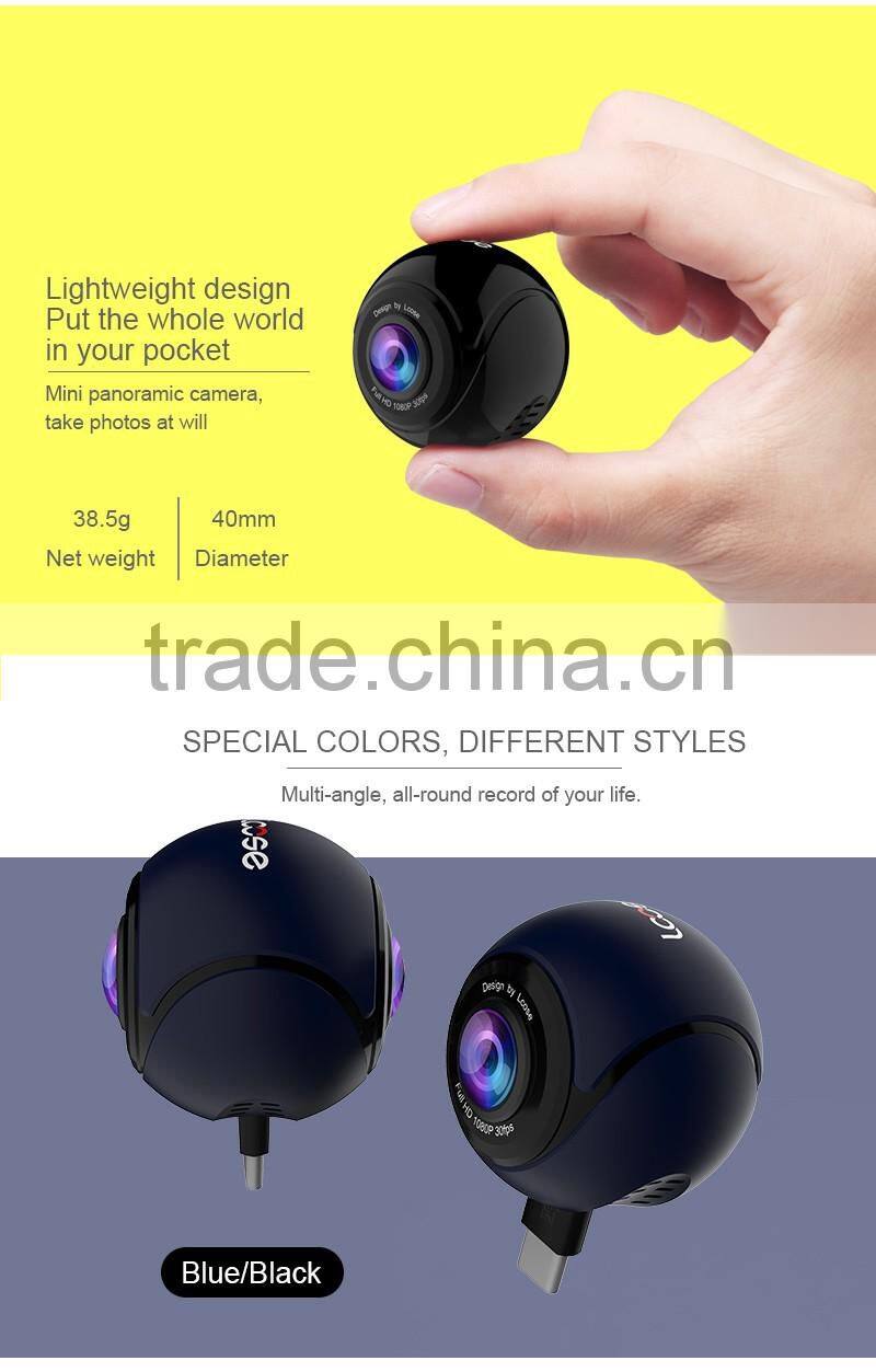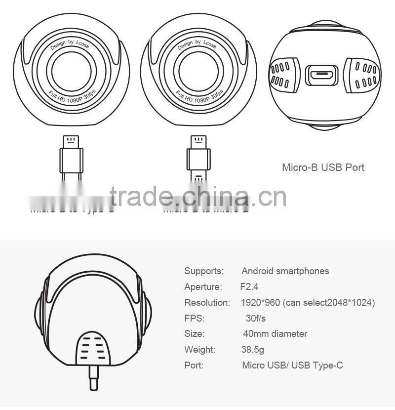 RGKNSE Multi Angle 360 Panoramic VR Camera 1080 HD Panoramic Camera for Android 30fps F2.4 Fisheye Lens Lightweight
