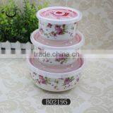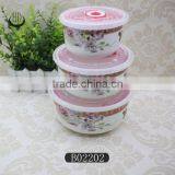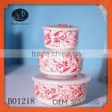 Custom Printed Ceramic Bowl Bowls With Airtight Lids ,3pcs Porcelain Fresh Seal Bowl