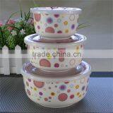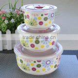 Ceramic Bowl , Set 3 Preservation Fresh Seal Bowl Set,3pcs Ceramic Salad Bowl Set With Plastic Lid