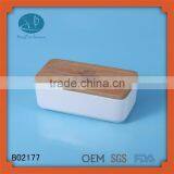 Ceramic Butter Bowl Wooden Lid,food Container Lunch Box Storage Box for Food,ceceramic Bento Box With Wood Lid