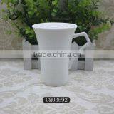 Double Wall Custom Porcelain Coffee Mug With Lid, Eco Ware White Porcelain Coffee Mug