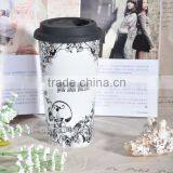 Double Wall Ceramic Travel Mug With Silicone Lid,ceramic Double Wall Promotional Travel Mug With Silicon Lid