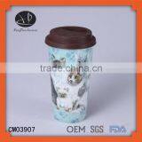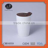 Drinking Ware Logo Customized Double Walled Ceramic Mug Cup With Silicone Lid