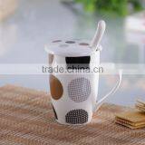 Ceramic Mug With Spoon,coffee Mug With Lid&spoon,floral Dot Travel Mug With Handle,mug With Spoon