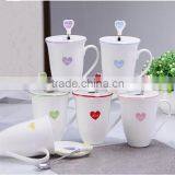 Ceramic Heart Shaped Tea Cup With Spoon & Lid,Love Shape Ceramic Coffee Mug With Lid and Spoon Household