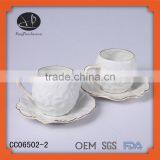 Unique Shape 2016 New Designs Glod Rim High Quality Coffee Ceramic Tea Cup and Saucer,wave Shape Cup and Saucer
