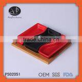 Ceramic Serving Plate Set With Bamboo Base,colored Glaze Plate