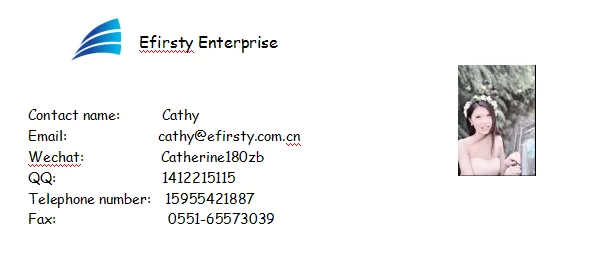 EFIRSTY ENTERPRISE (ANHUI) CO., LTD was established in 2009, which covers an area of 24,000 square meters with 40,000 square meters of building area. It has more than 600 fixed staff, including 30 management staff and 20 technical personnel. The company owns RMB13.6 million of registered capital and RMB63.6 million of fixed assets. We are approved of qualification both in import and export.