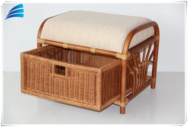 Home > Products > Umbrella&Accessories > Rattan Wicker Ottoman Footstool Pouf Stool W/Basket