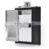 6 OZ Stainless Steel Wine Bottles Stick Black Twill Leather Cigarette Case