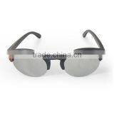 Mirror Lens Retro Halft Rim Round Wood Sunglasses