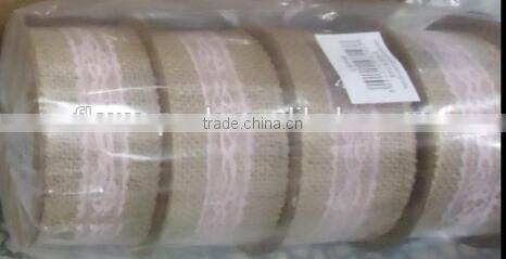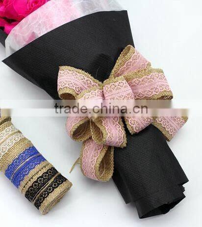burlap raw jmaterial jute ribbon with customerized lace logo