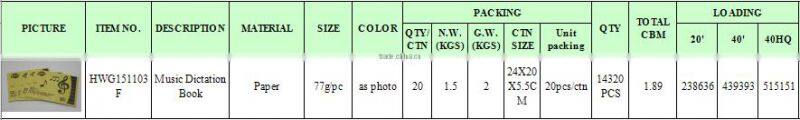 Home > Products > stock stationery and sports > Stock Lots of Music Dictation Book Music Book Music Composition Book HWG151103F