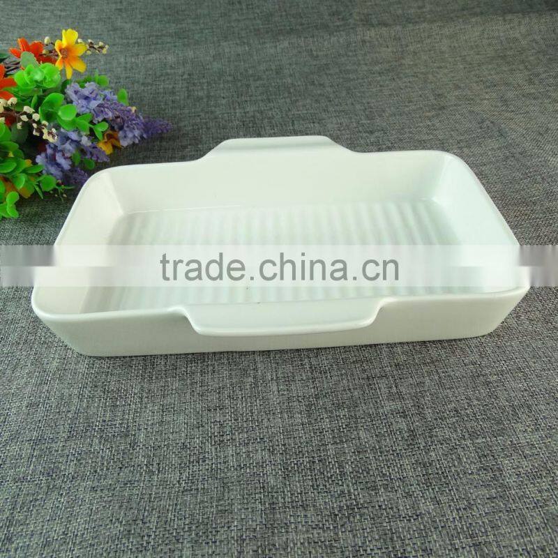 Stock Hot Wholesale White Ceramic Bake Plate With Handles for Daily Use