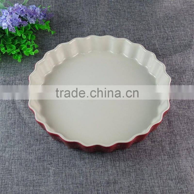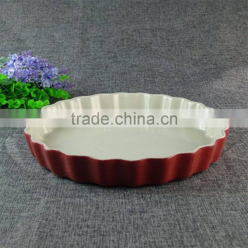 Stocked Cheap Round Glazed Ceramic Baking Plate Two-tone Bakeware Porcelain Kitchen Tools