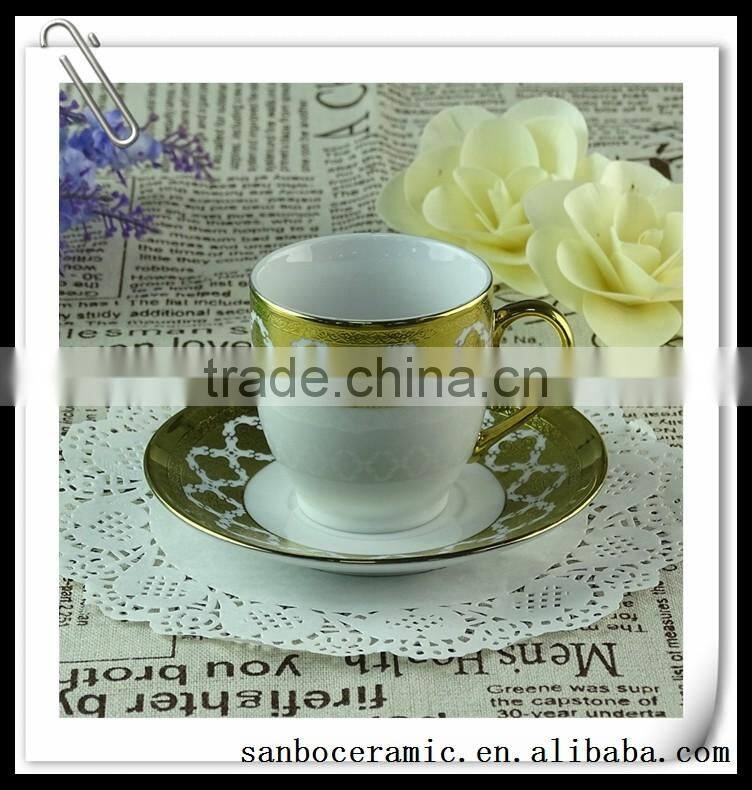 White Ceramic Tea Cup With Unique Embossing and Golden Line for Wholesale 12 Pcs per Set,with Color Box.good Quality