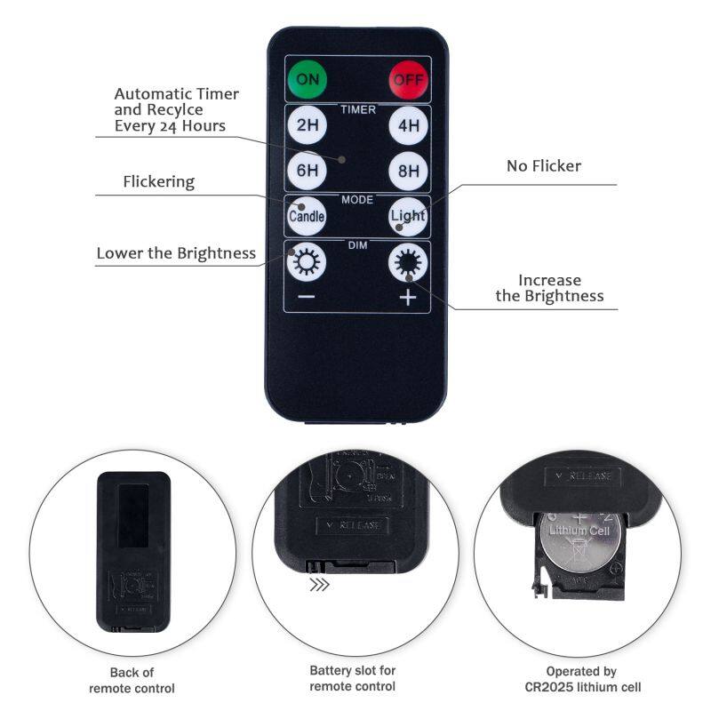 ★ EASY & CONVENIENT OPERATION: With One Remote Control, You Can Control All Flameless Candles, it can change lighting modes, adjust brightness, and set timer.