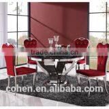 Promotion Factory Price Stainless Steel Restaurant Table With Glass Top/round Dining Table With Chairs