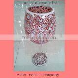 Pink Color Colored Mosaic Style Hurricane Glass Candle Holder for Wedding Decoration