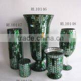 C.Main Items are glass mosaic items.glass vase,pot,glass candleholder,drinking glasses,goblet,glass bowl,glass plate,glass jar for storage and perfume bottles.And we also deal with other seasonal decorations and home decoration,for example: heart,egg and animal.