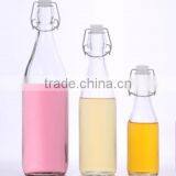 1000ml/500ml/250ml Clear Empty Glass Beverage Bottles With Plastic Clamp Lid Wholesale