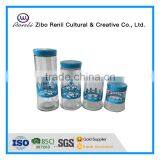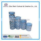 Set 4 Blue Flower Pattern Round Glass Storage Jar And Metal Lid