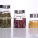 Set 3 Clear Round Large Glass Storage Mug With Metal Dot Printing Lid