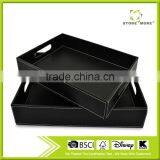 Black Catch All Faux Leather Stain Resistant Tray Set