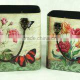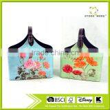 Flower Print Faux Leather Buckle Handle Magazine Newspaper Basket/holder