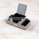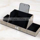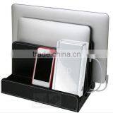 Black Faux Leather MDF Cell Phone Charging Organzier For Office/Hotel/Home