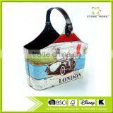 Car Print Faux Leather Magazine Basket With Handle-Purple